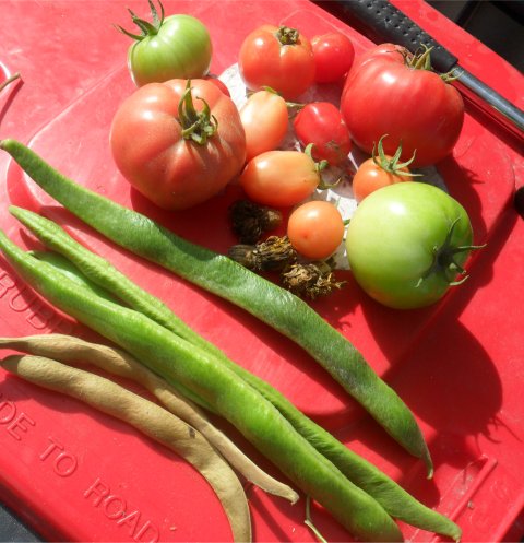 | Our weekly scoop from the garden... Seed Pods and Veggies |